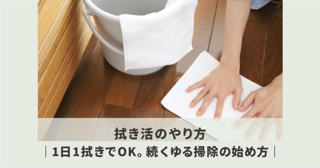 拭き活のやり方は、1日1か所を水で拭くだけ。掃除が苦手でも続けられる、ゆるい習慣の始め方とコツをまとめました。完璧じゃなくていい拭き活の基本を紹介します。 -