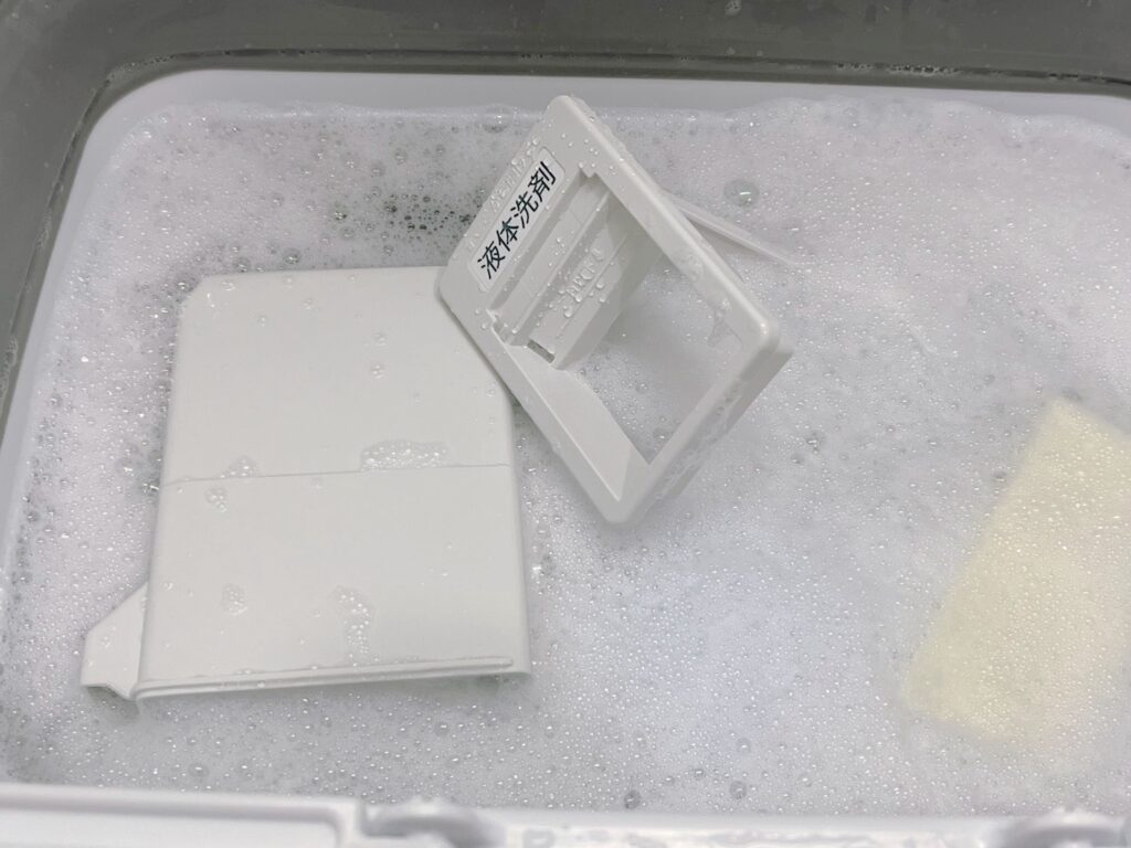洗濯乾燥機に「洗剤が少なくなっています」という表示が出たら、投入口の掃除のタイミングと決めました。はい、最近決めました(笑)