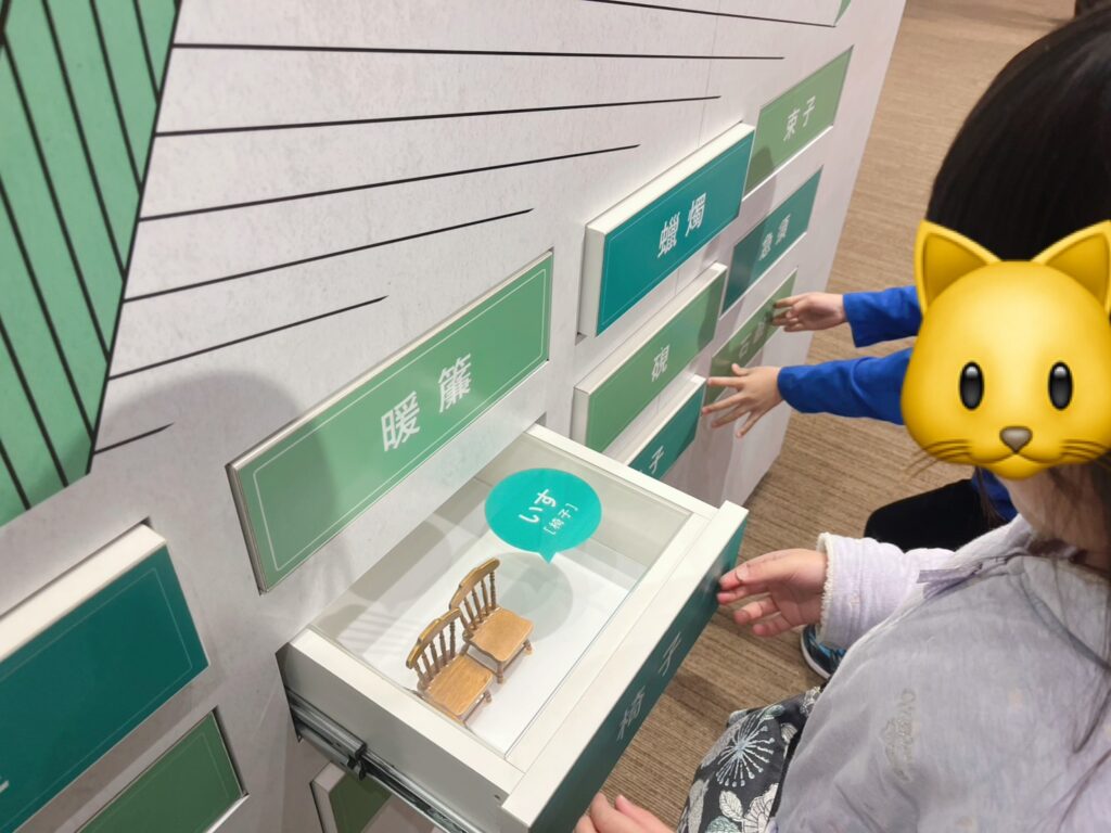引き出しを開けると、道具のミニチュアが教えてくれます😊かわいい❤️