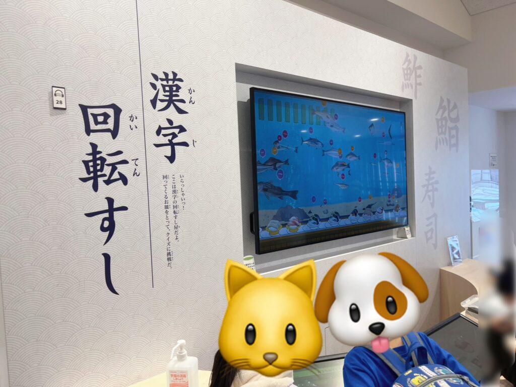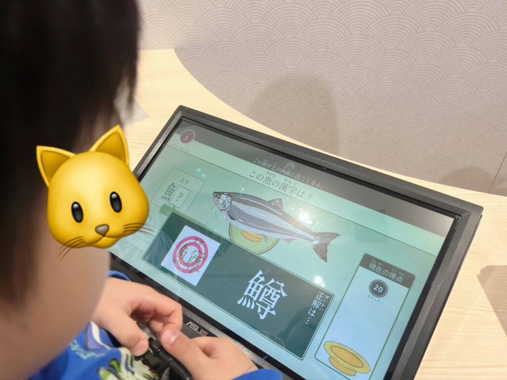 回ってくるお寿司を取ると、そのネタの魚の漢字クイズがスタート。
