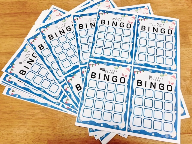 上記の写真は、クリスマス会で実際に使用したビンゴです🎄