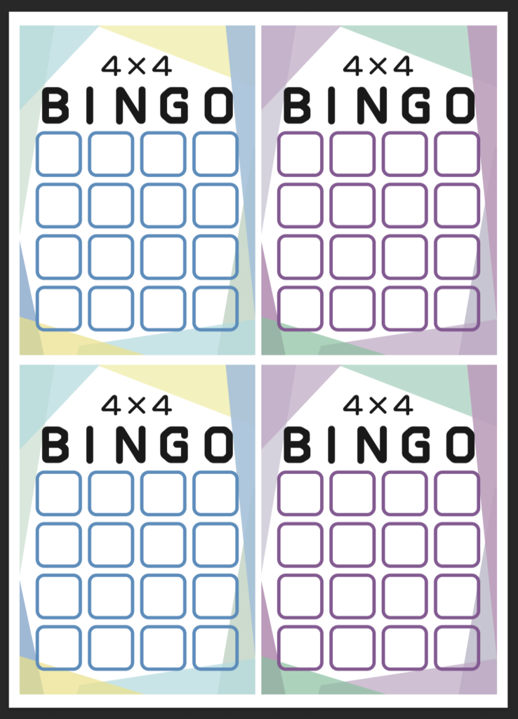- 大人数の場合は、ビンゴカードを多めに用意しておくと安心