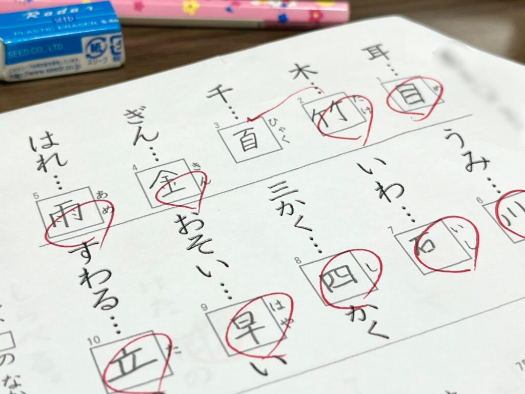 私「漢字たくさん覚えてきたから、1年生レベルの漢字テストやってみる?」