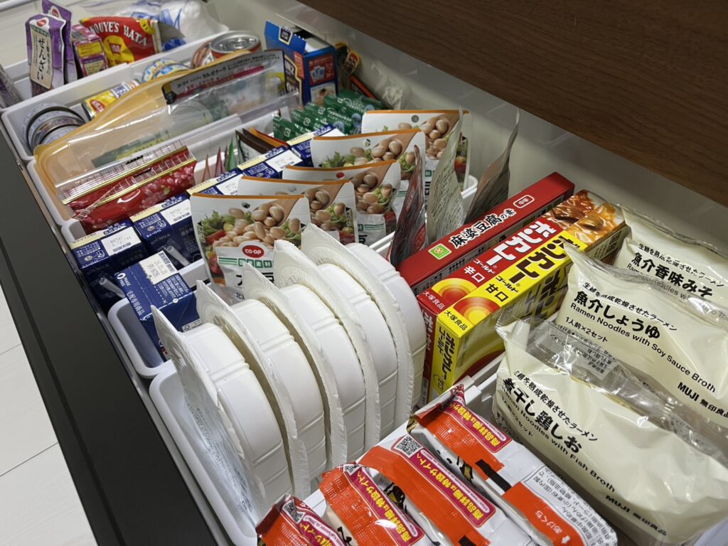 今日はキッチンの “一番下の引き出し” を全出ししてお掃除しました。ここには、缶詰・乾物・パスタなどの長期保存できる食品を入れているのですが、つい気づいたら奥の方でぎゅうぎゅうになりがち。