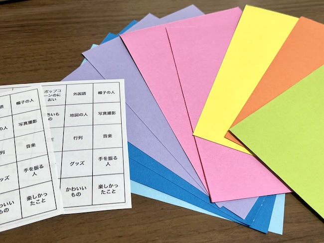 カラフルで気分が上がるように、画用紙も一緒に入れました。